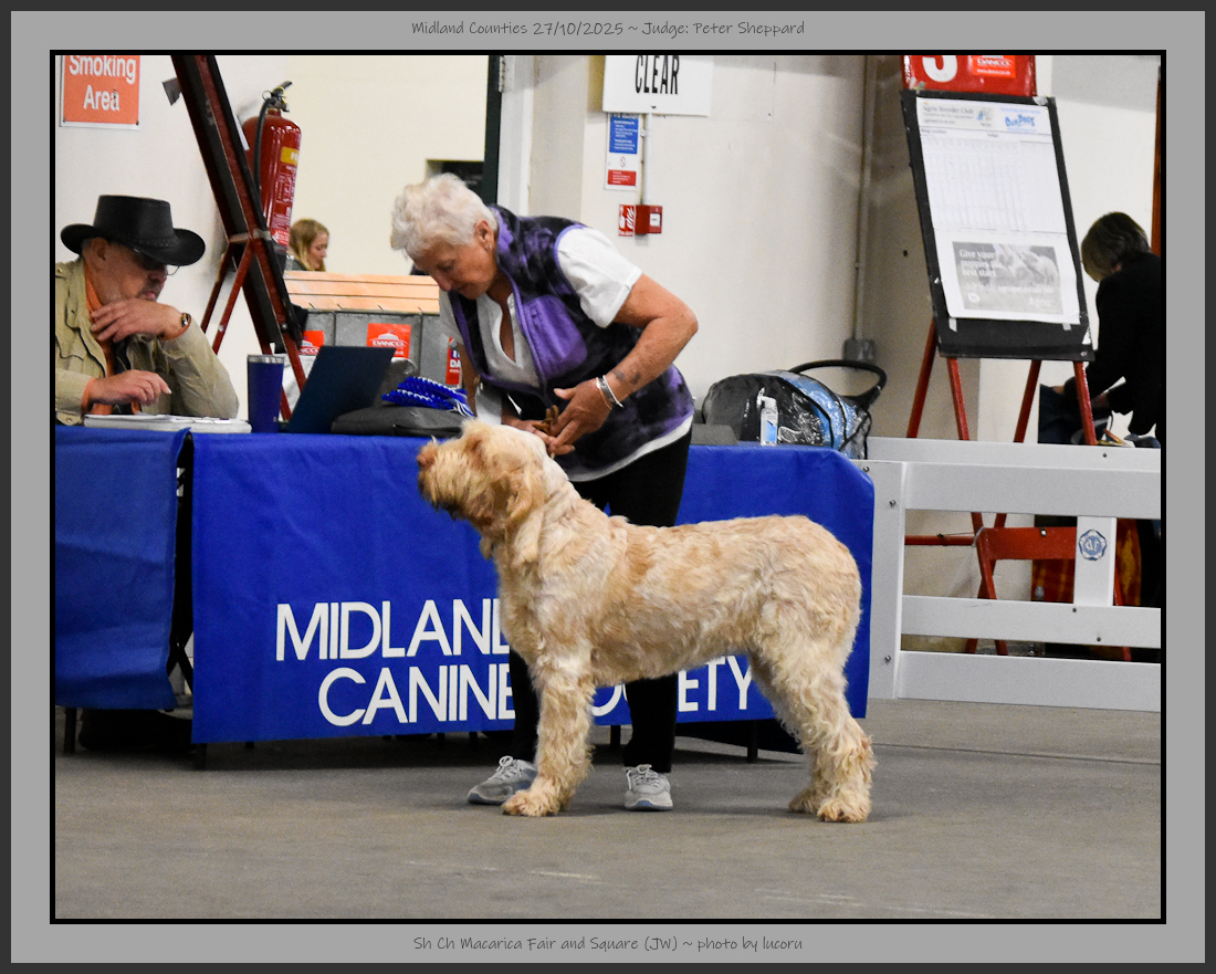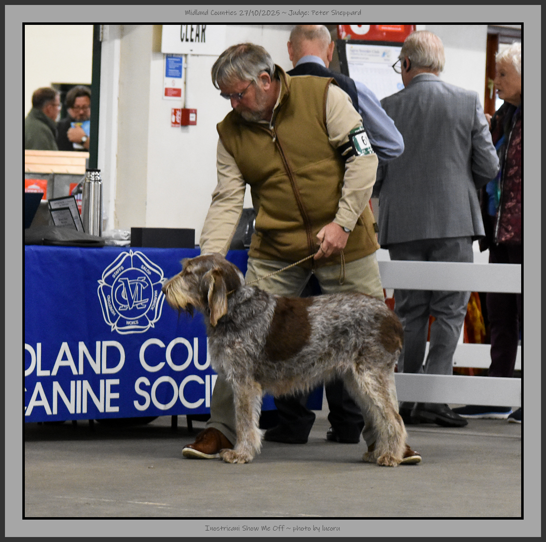 | I am grateful to the Officers and Committee of the Midland Counties Canine Society for giving me the opportunity to give CCs to Italian Spinone for the first time. I am also grateful to Gavin, my steward, who by himself kept the ring running smoothly. | |||