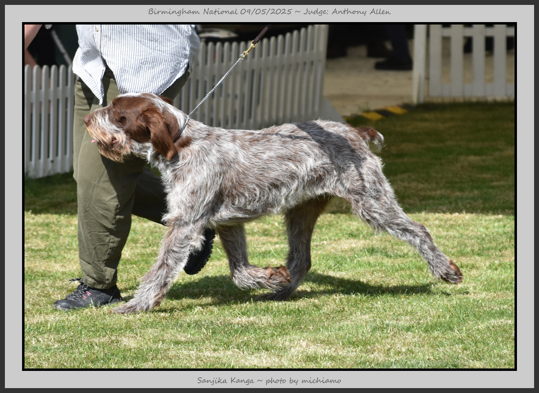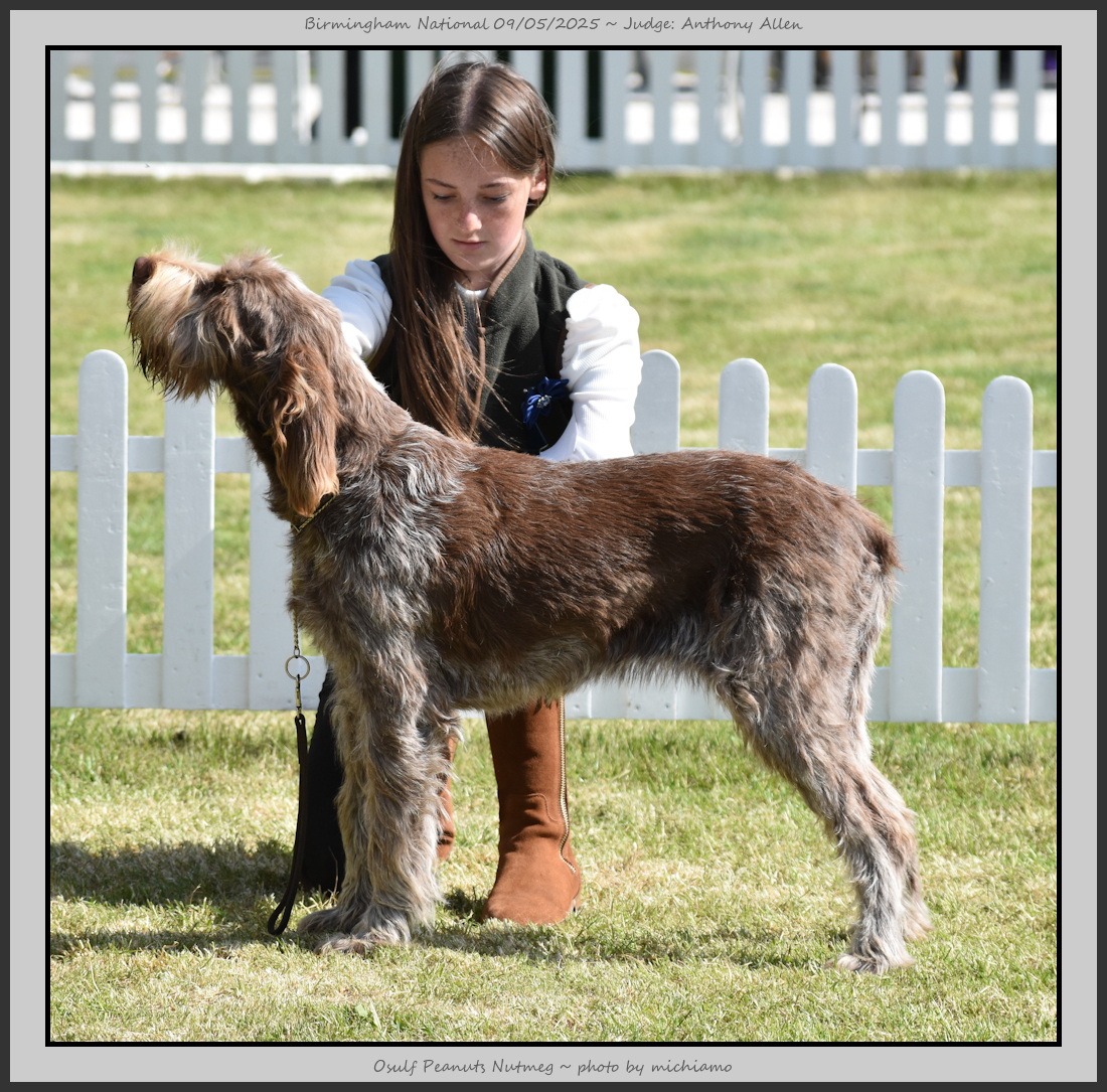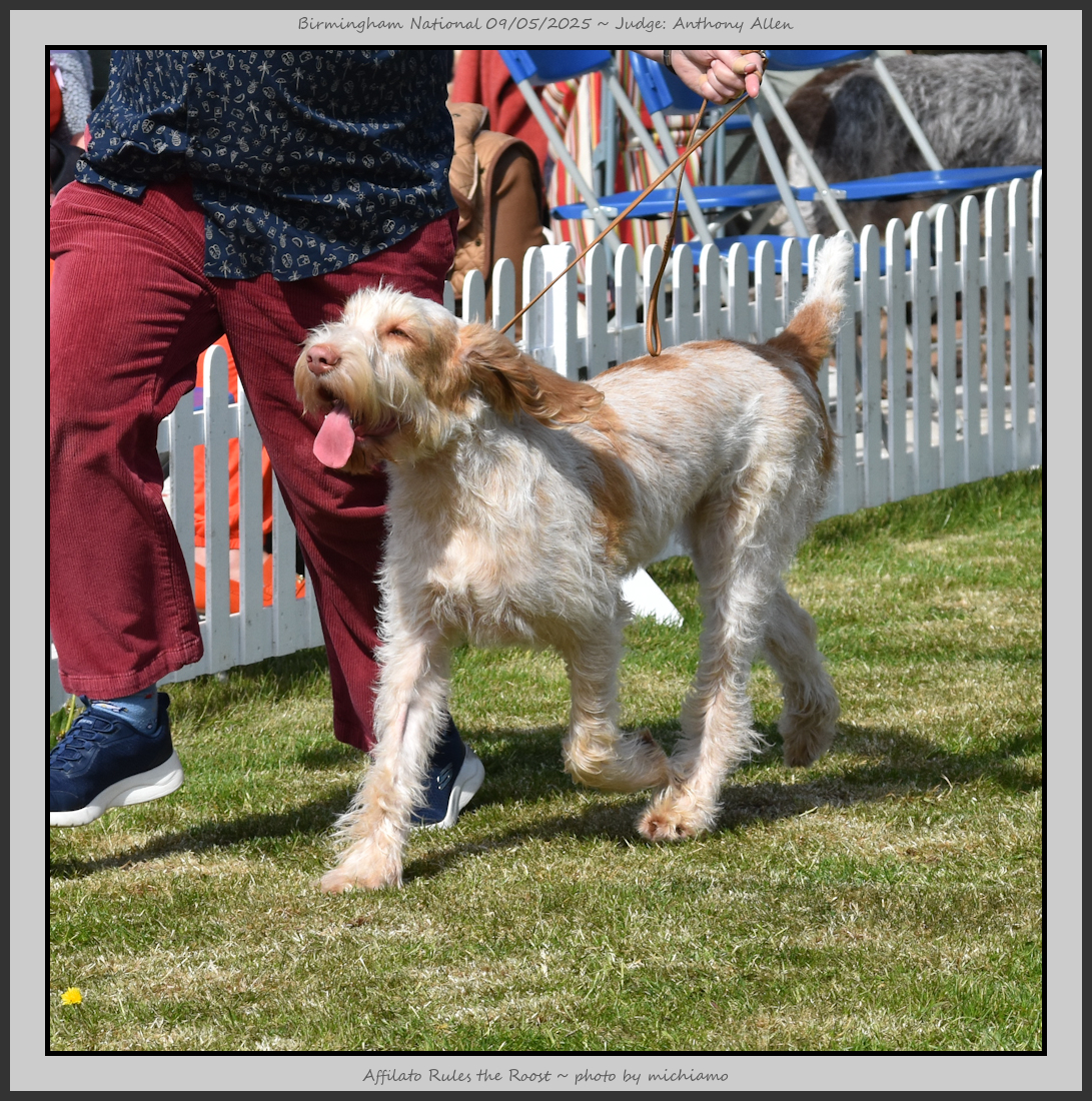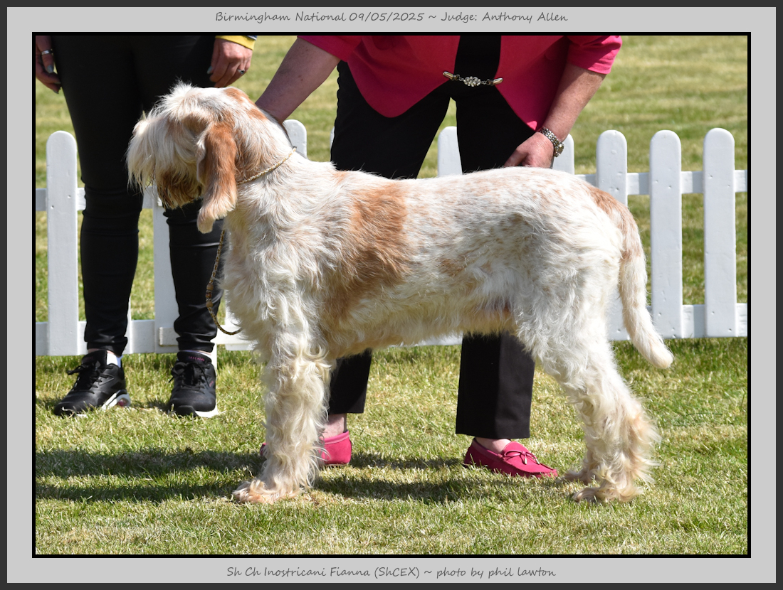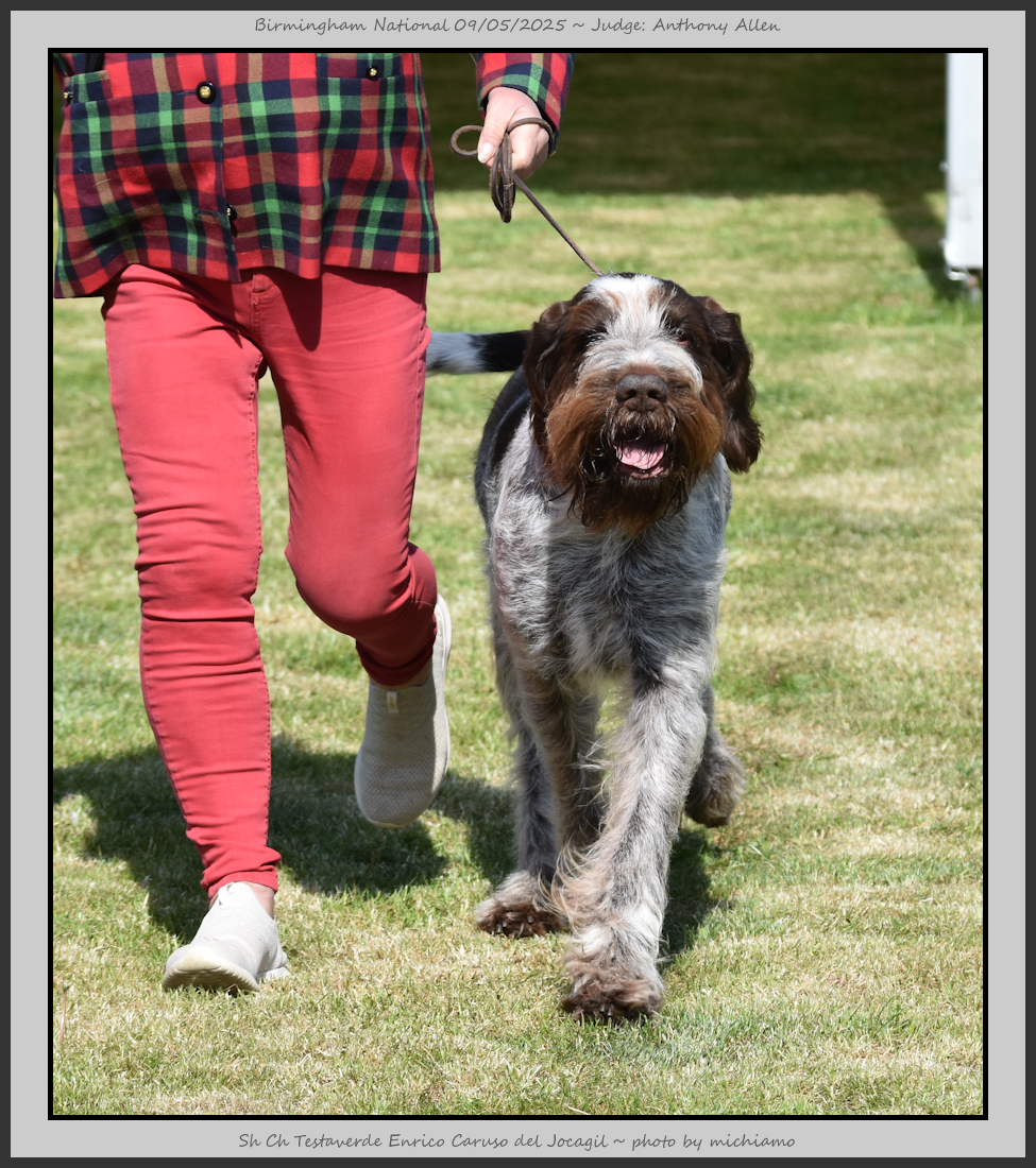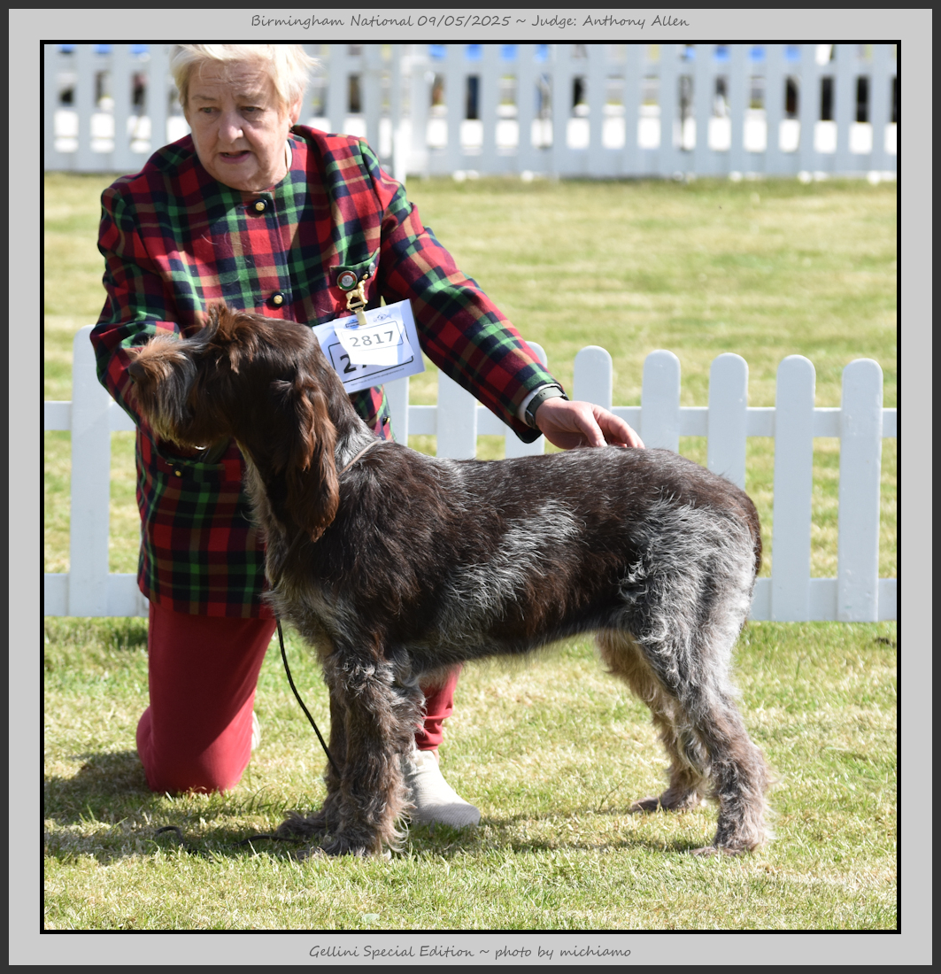 Clark & Sharp | A most impressive Italian Spinone dog who has the most wonderful outline and was in wonderful muscle condition and coat. He has a glorious head and expression. Correct topline and carries his tail correctly. On the move he just cannot be ignored and he really impressed in profile today as the big ring really suits him. Judge Lee Cox. |