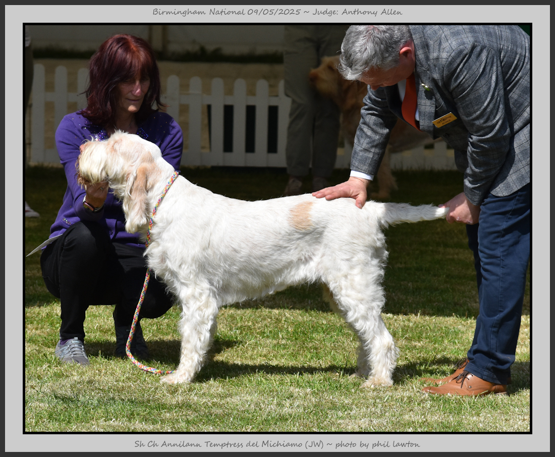 | My first time awarding CC’s in Italian Spinoni, I had a super entry with some lovely dogs to go over, my thanks to the exhibitors for entering under me and for taking my decisions so sportingly. To my super stewards my thanks. | |||