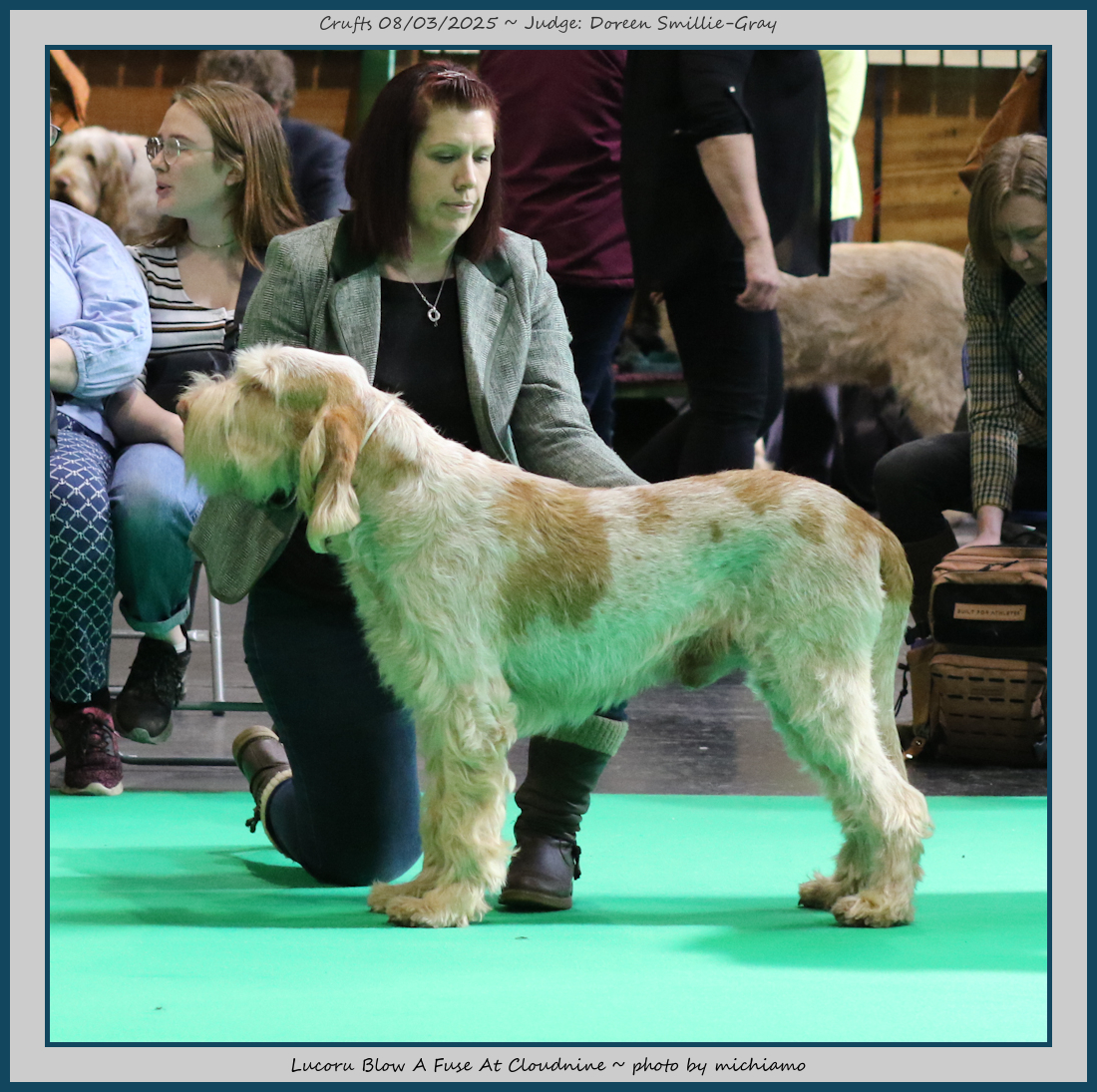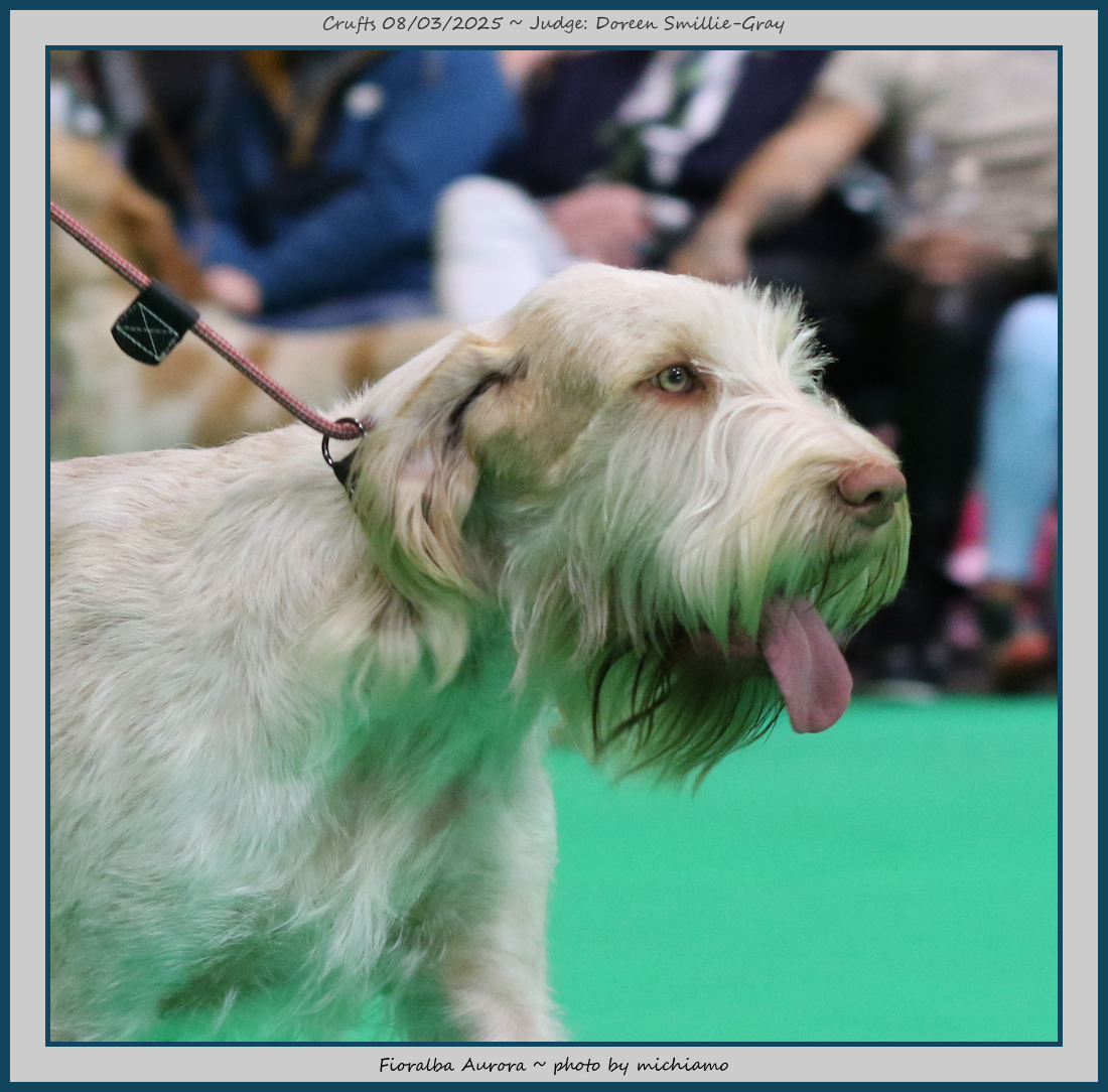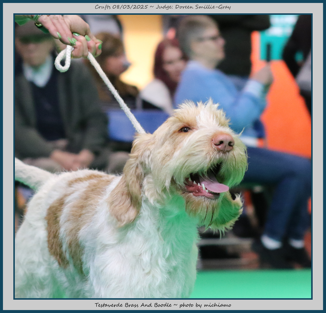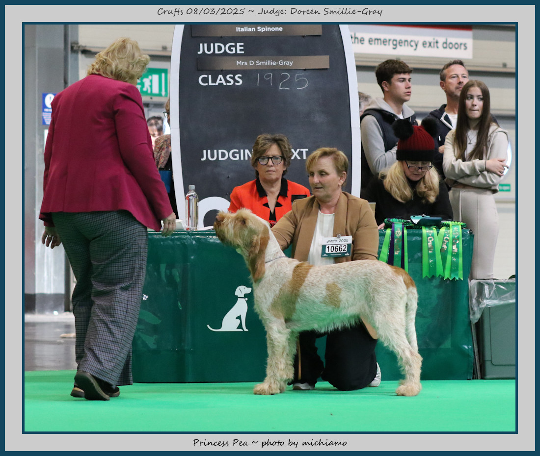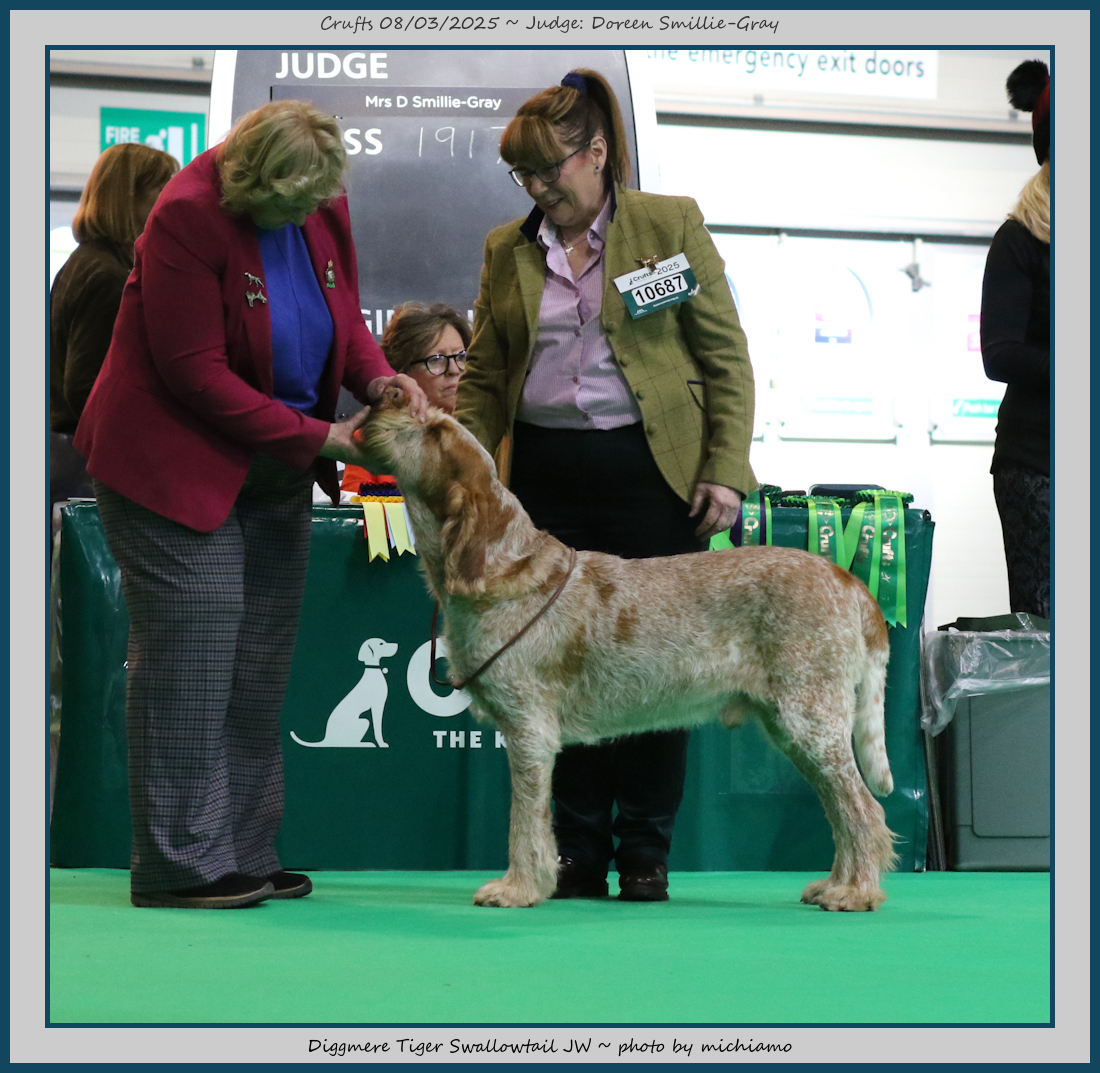 Mann | Stood alone but a worthy winner and also delighted to award him RCC. His young handler did a great job showing him. To me he typifies Italian Spinone, good expression and head, excellent depth and well muscled which enabled him to move around the ring with power and drive, moves true and good angulation. Good harsh coat, I shall watch his future in the show ring with interest. |