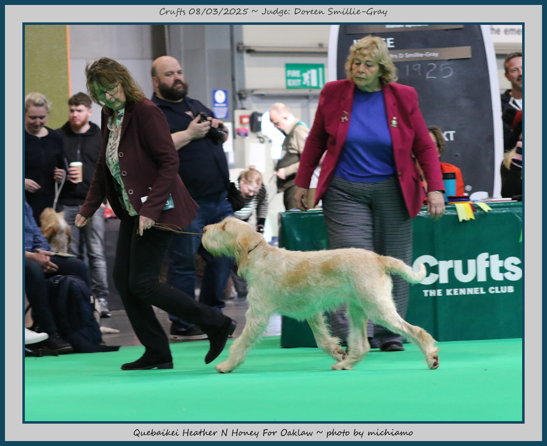 Challands | Where has she been hiding, seriously considered for RCC. Very typy girl, with the sweetest of expressions, great angulation fore and aft, good depth and correct proportions, moves really well and has good harsh coat. |