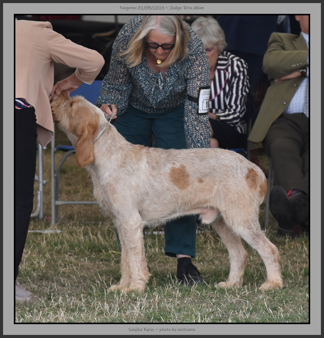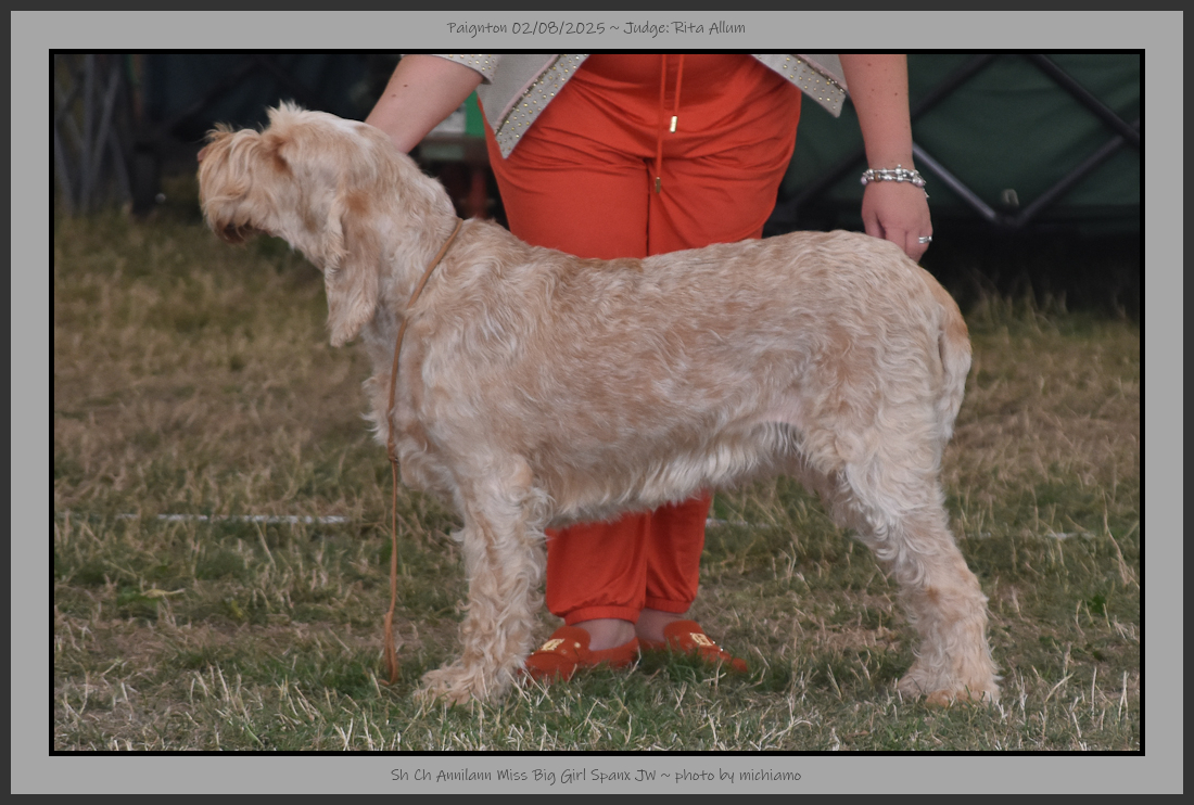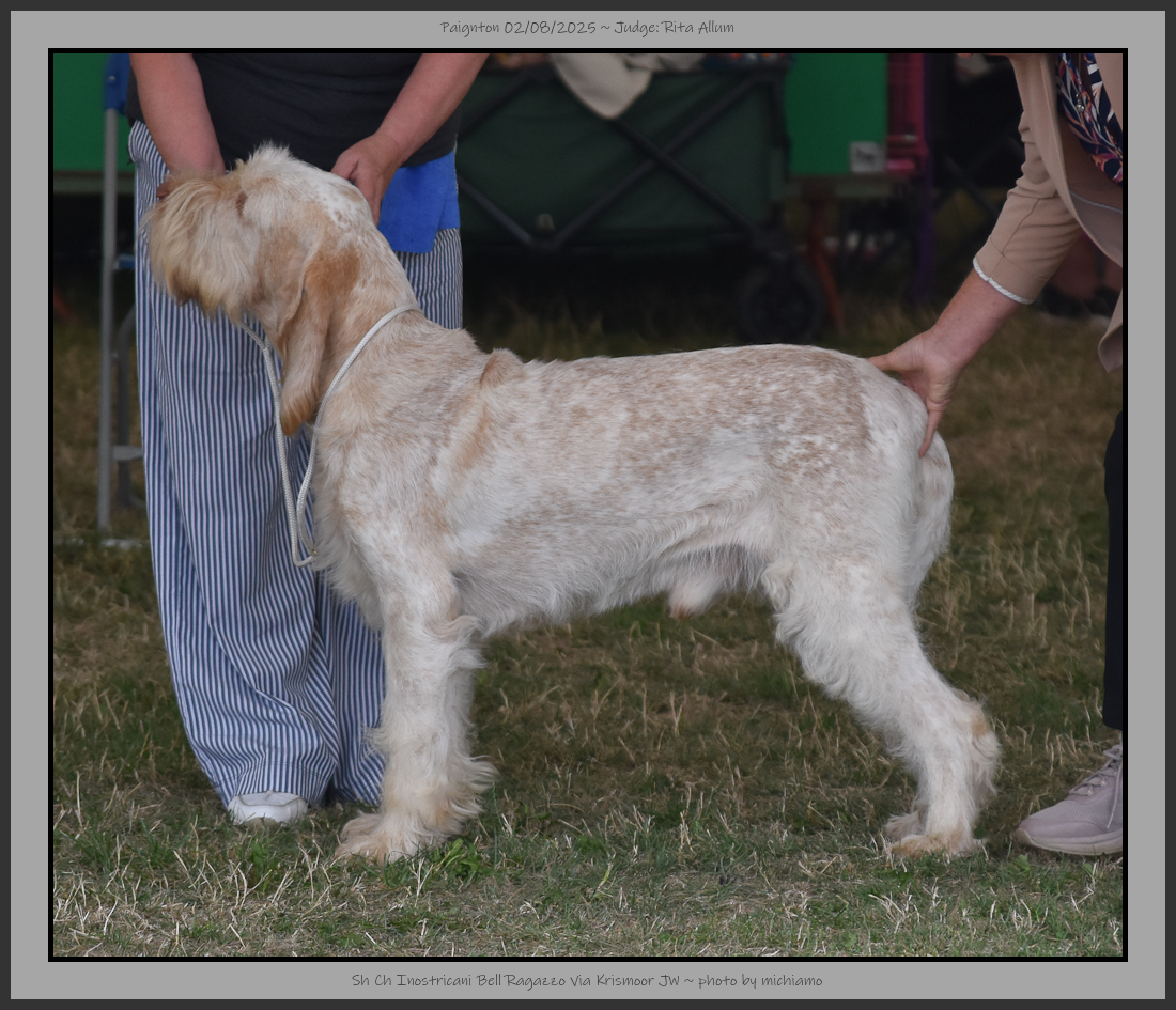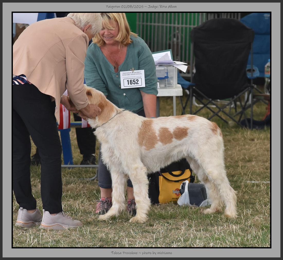 | I would like to thank the committee for allowing me to judge the Italian Spinoni at Paignton. | |||