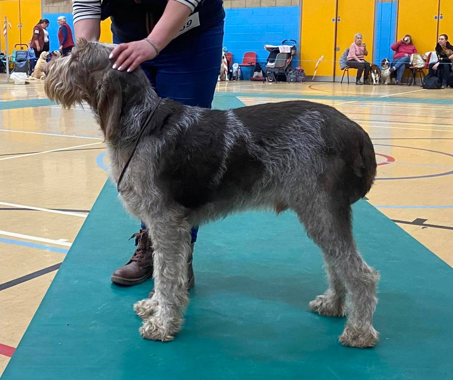 Gill | A lovely mature boy with plenty of furnishing on head and good coat, balanced and fit for purpose throughout. He has good depth to muzzle and a well defined furrow and occiput, his human like expression really finishes it. He owns a muscular neck and good fore and aft angulation, lovely spring of rib and a broad deep chest. Owns a brilliant top line and tailset which is not exaggerated with good bend of stifle, moved out effortlessly with good drive. |