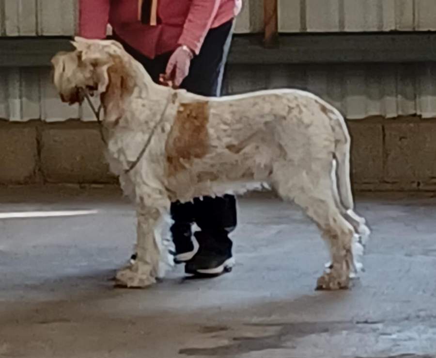 James | a girl full of quality and breed type. Head with divergent planes, good finish to muzzle and plenty of furnishings , lovely kind expression. Powerful neck, sitting cleanly into topline, slight rise over loin. Large round feet, shown in the best of muscular condition. Moved well, with reach and drive, always maintaining her topline. |