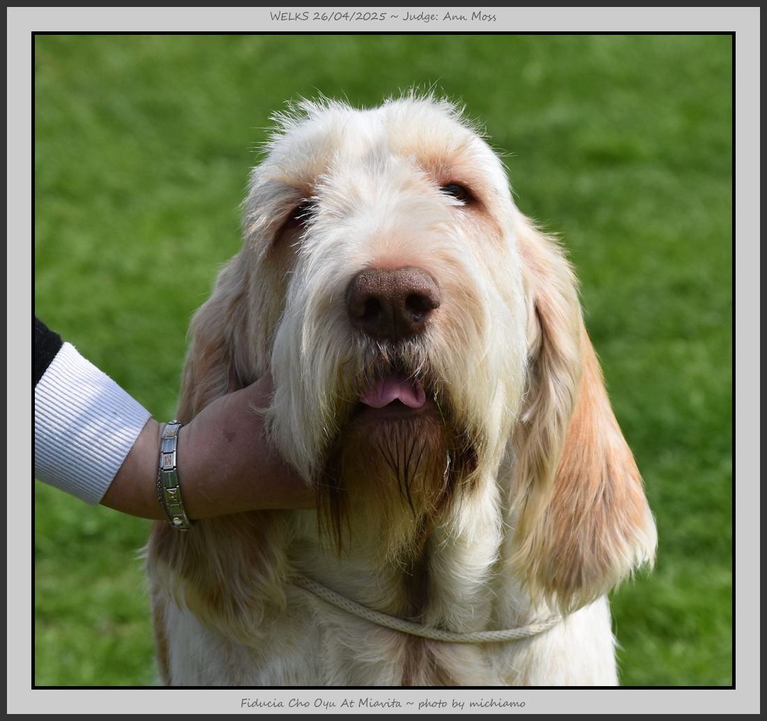 Griffin | Good head and eye, good front and rear angulation, nice outline. |